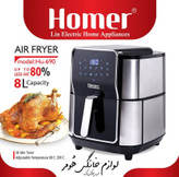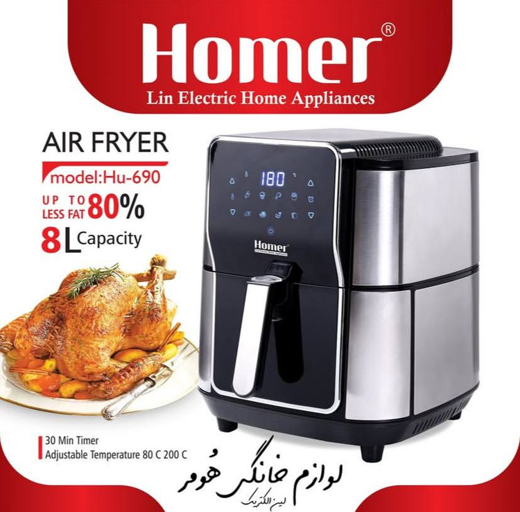 سرخ کن بدون روغن هومر مدل ۶۹۰ با ظرفیت ۸ لیتر یک دستگاه پخت و پز است که از فناوری گردش هوای با سرعت بالا برای پخت غذاهای خوشمزه با کمترین میزان روغن یا بدون روغن استفاده میکند. این دستگاه دارای ویژگیهایی مانند نمایشگر LED، کنترل دیجیتال، تایمر ۶۰ دقیقهای، و قابلیت تنظیم دما از ۵۰ تا ۲۰۰ درجه سانتیگراد است. همچنین، سبد و محفظه این سرخ کن از جنس نچسب ساخته شده و تمیز کردن آنها آسان است.